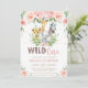 Jungle Animals Safari Rosa Blommigt 1:a födelsedag Inbjudningar
