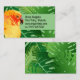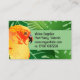 En solig gult och orange Conure Parakeet tillför ett livligt färg till dessa djungeltematiska affärskort, för karriärer inom tropiska resor och turism, fågelaffärer och veterinärer eller exotiska fågeluppfödare. Löven med den fina grönten kompletterar presentationen.