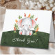 Utformningen av safari-babyduschen i cute-vattenfärgsdjungeln med en elefant med löv i djungel på mörk grönt bakgrund. Perfekt för en flickdusch, pojkdusch eller könsneutral babydusch. Besök vår butik för att visa denna design med enskilda djur