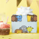Admatta djur i zoo eller djungel, hippo, lejon, elefant, apa på den här söta födelsedagen eller babyduschpresentskrapen.