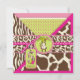 Safari skriver ut, giraffe, zebra och cheetah och en polka punkt mönster, med apa hängande på en vind och 3D-märkre, bows, trims femte födelsedagsinbjudningskort.