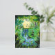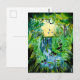 Traditionella gouacher-landskapskonst som skildrar ett vår av sötvatten och ett litet vattenfall i mitten av tjockt vegetation djupt i en djungel på ett vykort