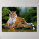 Djungeltigern, säker, kraftfull och modig, vilar på en stillastående ström medan han väntar på nattens fall när han kommer att förfölja sin be för att uppfylla sin dag.