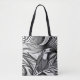 En tukan med en framträdande beak avbildas mitt i ett snurrande monokromatiskt mönster som framkallar en känsla av djungelrörelse i löven. Konstruktionen med högkontrast framhäver fågelns egenskaper i de abstrakter som omger den.