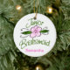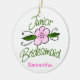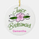 Junior Bridesmaids gifts-, t-shirts-, smyckes- och bröllopsfest keepsakes du kan anpassa med Jr. Bridesmaias namn eller annan text. Utformningen har en söt rosa- och grönt-blomma.