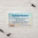 Annonsera ett strandrelaterat företag med snäcka på strandnära affärskort. En fläckig junonia-årskal sitter på sanden med vågar som försiktigt överlappar stranden. Lägg till blå text över den här bilden framtill med ett stycke som innehåller information. Ta med en webbplats i grund och byt över kortet för att lägga till kontorstid. All text kan anpassas eller tas bort efter behov.