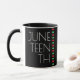 Ett 16:e firande-kaffe mugg. Den har en design som innehåller en svart bakgrund, en röd, svart och grönt rand, och brev är i vitt.