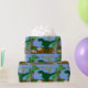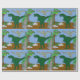 En teckning av enhistorisk plats fyllde med dinosaurs.