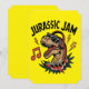 Jurassic Sylt Music Party Card-inbjudan - där T-Rex klämmer på gitarr men inte kan klappa för bostaden! Kort arm, stora riffer och ett förhistoriskt party som inget annat!