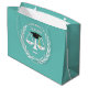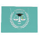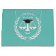 Rolig påse med present till juristexamen med kreativa rättvisans våg som bär svart och guldexamen mössa. För att anpassa, redigera texten för att lägga till namn och år eller annars anpassa för advokat.