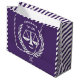 Kreativ påslagsdesign för lila juridikexamen med möjlighet att anpassa texten med examenens namn och år.