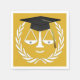 Kreativa servetter för juristexamen fest med unika rättvisans gudar personifierade som bär en svart och guldexamen mössa.