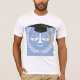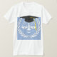 Rolig t-shirt för juristexamen med rättvisans våg med examenshatt på ljusblå bakgrund som present till jurist.