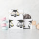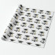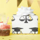 Kreativt presentpapper för juristexamen med klassisk svart hatt med guldrand och rättvisans vågar-mönster.