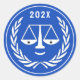 Kreativa presentsticker för jurister med roliga rättvisemått personifierade på blå bakgrund, perfekt för kuvert eller som presentetiketter till juristexamen-firande. Anpassa genom att redigera text.