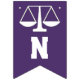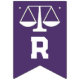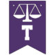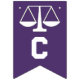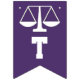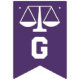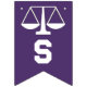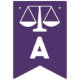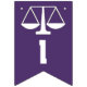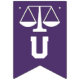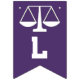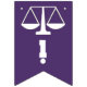 Juristexamen firande fest dekoration med rättvisans våg på lila bakgrund.