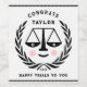 Kreativa juristexamen-festetiketter och presentidéer för juriststuderande med rolig citat och rättvisans vågar-serieteckning. Anpassa genom att redigera texten för att lägga till namn och år eller på annat sätt anpassa.
