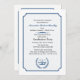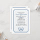 En polerad inbjudan med en tunn, blå, dubbel ram runt ett svagt blått randmönster och en internationell domstolsymbol. Den betonade utsmyckningen kan dras till valfri plats, göras större eller mindre eller tas bort.