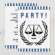 Kreativets advokatparti bjuder in till juristexamen i party, advokatfödelsedag eller advokatfirma.