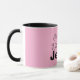 Just a Girl Who Follows Jesus Pink and Black Coffee Mug. Customize further by changing the background color with the Edit Tool. Enjoy!