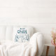 A cute, playful doodle like illustration of a snowman surrounded by tree and a text, that says "Just Chill".