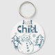 A cute, playful doodle like illustration of a snowman surrounded by tree and a text, that says "Just Chill".