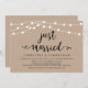 Vackra moderna rustika lantliga strängljus, svart typsnitt på brun kraftbakgrund, bröllopsannonsering, inbjudningskort (Just Married). Detta är perfekt för din bröllopsmottagning och efterbröllopsfirande. Lägg till dina detaljer i matchande typsnitt/ bokstäver.