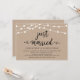 Vackra moderna rustika strängljus för lantgård, svart skrivstil på brun kraftbakgrund, bröllopsanmälan, inbjudningskort (Just Married). Detta är perfekt för din bröllopsmottagning och efterbröllopsfirande. Lägg till dina detaljer i matchande typsnitt / bokstäver.