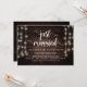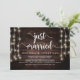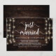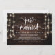 Just nyss gifta, Bröllopsutflykt Annonsering / Inbjudningskort, i Rustik lantlig Trä, Strängljus design. Detta är perfekt för din bröllopsmottagning och efterbröllopsfirande. Lägg till dina detaljer i matchande typsnitt / bokstäver.