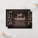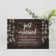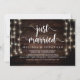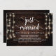 Just nyss gifta, Bröllopsflykt Annonsering / Inbjudningskort, i Rustik lantlig Trä, Strängljus design. Detta är perfekt för din bröllopsmottagning och efterbröllopsfirande. Lägg till dina detaljer i matchande typsnitt / bokstäver.