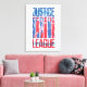 Denna patriotiska bild från Justice League är blå och röd, medlemmarna i förbundet har växlat i färg rand mellan logotypen i Justice League.