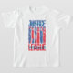 Denna patriotiska bild från Justice League är blå och röd, medlemmarna i förbundet har växlat i färg rand mellan logotypen i Justice League.