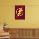 Kolla in Justice League Flash's logotyp i gult, accentuerad med röda penseldrag och spridda halvtonstreck visar att ge är en nostalgisk tecknad bok.
