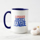 Denna patriotiska bild från Rättsligan lutas åt sidan och har formuleringen "United We stand" skriven ovanpå logotypen från Justice League.