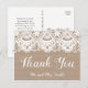 Jutesäck och spets bröllop tack-kort lantlig stil vykort