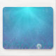 En digital illustration under vatten som visar strålen från solljus som strömmar ner genom vatten fullt av bubblor i blå grönt. Gömt i ogräs mellan lavender och grönt på havet är en enda pärla - en solitär havsskatt.