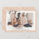 Modern Beige Gräs Boughs Elegant Script JOY Simple Helgdag Card. Skicka semesterhälsningar i anpassade och personlig till vänner, kolleger och familj i enkla, chic, elegant och moderna fotodesignkort, naturliga minimalistiska stil-kort! En vacker kalligrafi av " joy " i ramar, ditt foto framför dig. Under fotot visas ditt anpassningsbar hälsning-meddelande från din familj namn i modern typografi. Omvänd för att visa en vacker rosa blommigt & gräs träd boughs mönster pappra bakgrund.