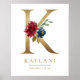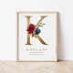 K Brev Monogram Namn Marsala Blommigt Nursery Poster