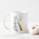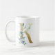 K gyllene inledning med blå blommigt bladverk kaffemugg