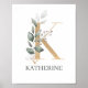 Brev K monogram blommigt. Brev K i guldbrun struktur accentuerad med grönt vattenfärgade löv och bär och guld stoft. Personlig med namn i matchande teckensnitt.