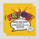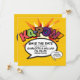 Anpassa med era namn och detaljer för att tillkännage datumet för er speciella händelse. Serietidnings-popkonst tematisk modern, rolig retrodesign, perfekt för bröllop, möhippor, baby shower, dop, förlovningsfester, årsdagsfiranden, examina, födelsedagsfester och andra speciella händelser under hela året! En cool, trendig och rolig design som sätter BAM! ZAP! POW! i din dag. Designad av ComicBookPop © på www.zazzle.com/comicbookpop*