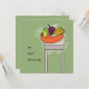 Kaart van harte beterschap met tafeltje waarop fruitmand. Tekst op achterkant, die kan worden gepersonaliseerd