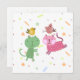 vierkante wenskaart voor kinderen met twee poezen, met vogeltjes op hun hoofd en tekst: fijne verjaardag! Tekst kan aangepast worden.