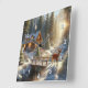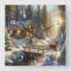 Kabin i Snö Fylld Skogen med Hjort Fyrkantig Klocka