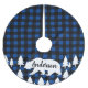 Rustiska vibbar kommer! Den här Julgran-kjolen har en vinterblå och svart buffelkontroll som kallas mönster med en vit björnsilhuett på grund framsidan av kjolen som innehåller din familjs namn i rustiskt skript. Vilken underbar träd-kjol för en stuga eller jaktlott!