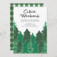 Särdrag för denna kabinhelginbjudan räcker målade vintergröna träd och en lantlig ginghambaksidadesign. Perfekt för din nästa bergflykt- eller bachelorettehelg i skogen! Parar perfekt med vår matcha resplan.