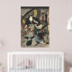 Lämnat panel av vintage Ukiyo-e-triptych som visar en nattscen från ett spel i Kabuki. Actor Hachiman Taro Yoshiie håller en parasol medan en oidentifierad skådespelare, klädd som lejon, håller en lantern. Ursprungligen undertecknad: "Motome ni oji Toyokuni" (målad på begäran av Toyokuni). Från ett ursprungligt 1800-tal (1847) träsnitt, Hachimantaro Yoshiie Abe Sadato: Sadato Tsuma Sodehagi' (En aktör i rollen som Hachiman Taro Yoshiie: en aktör i rollen som Abe Sadato: en aktör i rollen som Sodehagi, hustru till Sadato), av Utagawa Toyokuni. Alla Höger reserverade © 2013 Padre art.