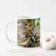 Perfekt för resan och kaffe älskare. En vattenfärgsmålning av vardagen i en mysigt kafé i Austin, Texas, med en blandning av pulserande energi och rustik charm. Inuti sitter patroner på bord, vissa arbetar på bärbara datorer, andra chattar över kaffe, med en person som kissar på en liten bord omgiven av färgpennor. Dekorn omfattar pastellstall och gräddväggar, hängplantor i makraméhållare och en kritmeny i ljusa orangar, gult och rosa. Solstrålningsströmmar genom stora glasfönster och belyser en barista som bereder espresso och en kund i en bred hatt. Utanför fönstren vilar cyklarna mot en mural täckt vägg med djärv, vibrerande gatukonst. På scenen finns , lush-gröntar och levande poppar från färg som skapar en livlig men avslappnad atmosfär. Vattenfärgen stil användor mjuka penseldrag och varma toner med vibrerande accenter, fångar kreativet och välkomnande av Austin.