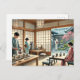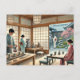 Perfekt för kaffe och resa älskare. Vattenfärgsmålningen visar på ett vackert sätt den goda och harmoniska atmosfären i en lugn kaffebryggare i Kyoto. De varma träpanelerna och Shji skärm är mjukt utspridda solljus i rymden och skapar en inbjudande glöd. Låg bord med tatamidammkuddar ger en traditionell beröring, medan slimmade svarta ljusfixturer ger en modern kontrast. En barista i en linjepron bereder på ett skonsamt sätt över kaffe, ånga som stigning på ett lämpligt sätt i lugnen. En kvinna i en ljusblå kimono har en matcha latte, och ett par i närheten delar wagashi-godis, deras livliga uttryck tillför värme. Utöver de stora gliddörrarna ger en liten, frusen trädgård med mossbara stenar och en körsbärsblomma i fullt en levande rosa, som kompletterar neutralten beige och bruna tonar i insida. På scenen fångas Kyotoprotokollets perfekt blandad med tradition och modernitet.