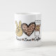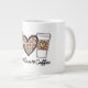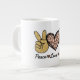 Den här roligten och den här lekande utformningen av kaffet mugg har en sjudande bakgrund i grönten med ett fredstecken som glittrar i guld och symboliserar harmoni och lugn. Framför allt visas frasen "Peace Kärlek Coffee" i ett fräckt teckensnitt. Två charmerande hjärtformade ikoner följer med fredsteckenet: en med en snyggt leopard och den andra med en hjärtedetalj i guld som visar en kopp av kaffe. Den här designen firar livets enkla glädjeämnen - fred, kärlek, och den lugnande ritualen att njuta av en utsökt kopp av kaffe.